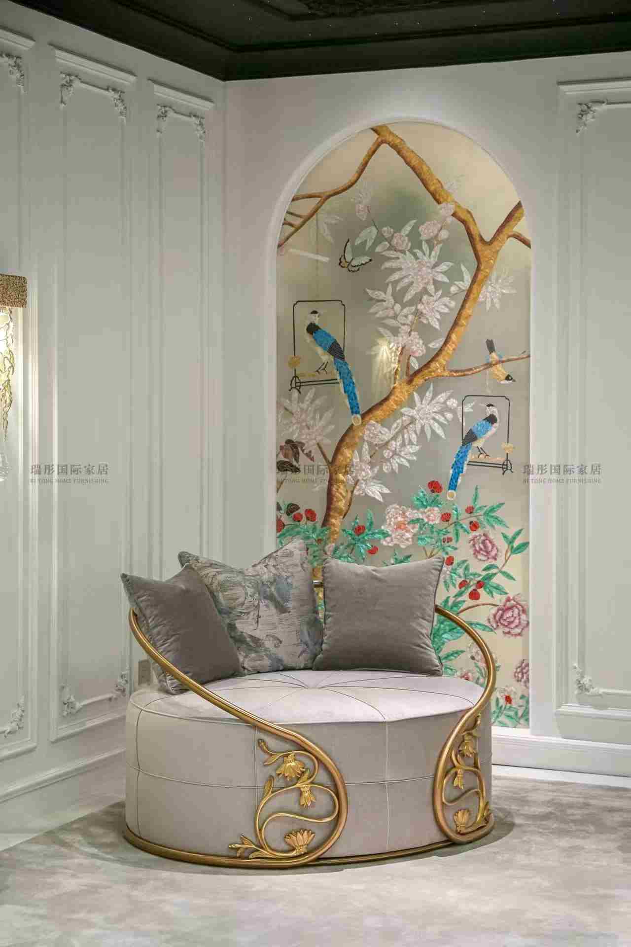 :雕刻部分采用CNC基础形体+手工精修,层次深、转折自然;涂装采用多层喷涂+独家调色体系,搭配手工贴金箔与封釉处理,呈现温润的“玉感”漆面;软体部分采用八向手工绑弹簧+羽绒叠层,兼顾舒适度与耐用性。
