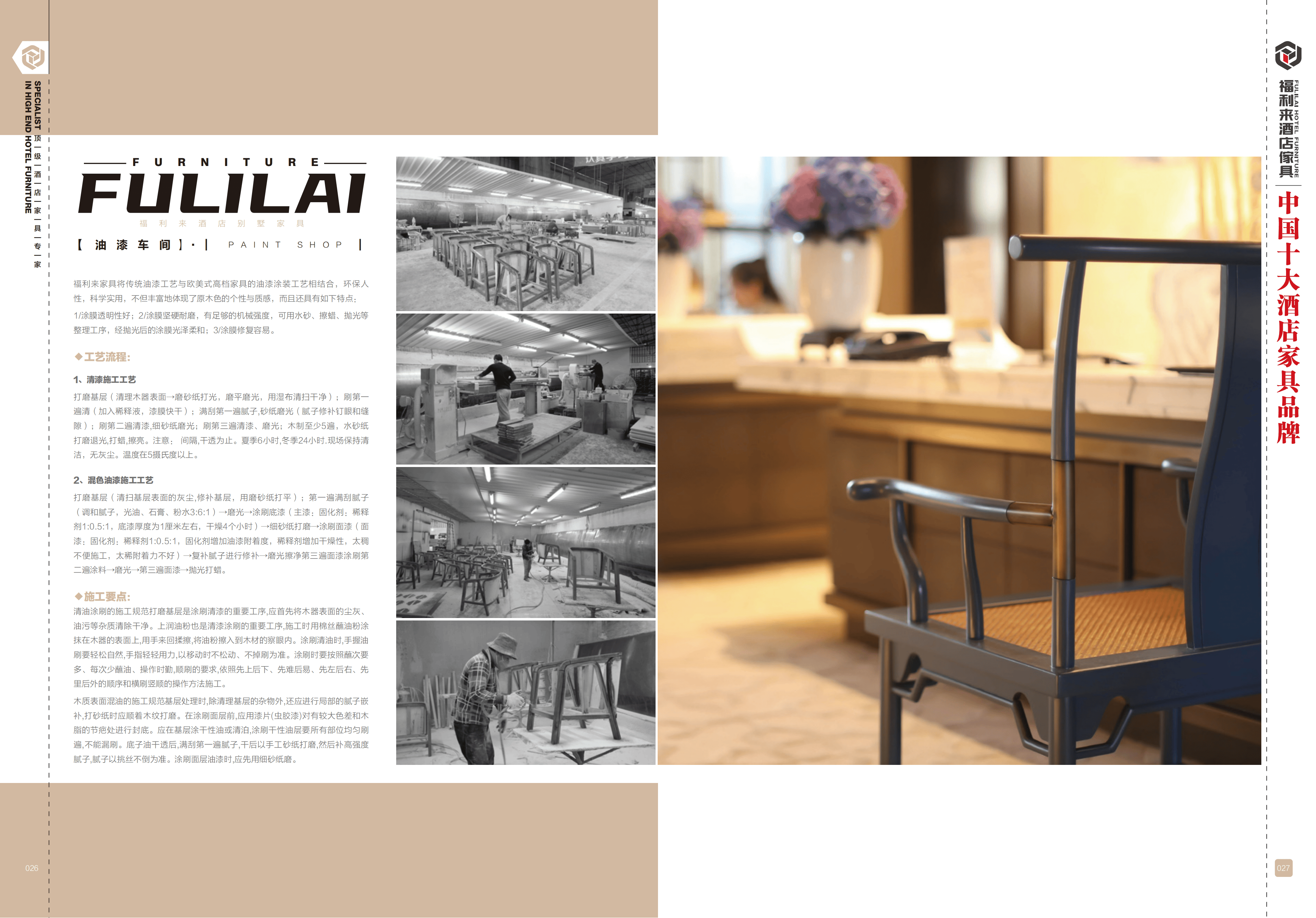 福利来家具拥有专业的设计团队和施工安装团队。30多名5年以上酒店固装、活动家具设计团队,十余年经验设计师1对1对接,能够根据酒店的特殊布局和风格需求进行个性化设计。从画图到生产全在工厂完成,误差≤0.5mm,安装严丝合缝。还有30余名工厂品控人员为产品品质保驾护航,60余人资深现场施工安装服务人员全程为项目现场安装,确保每一个环节都能达到高标准。而且,福利来家具从原料加工到安装的全流程都进行品质管控,严格把关每一道生产工序,确保高品质产品输出。